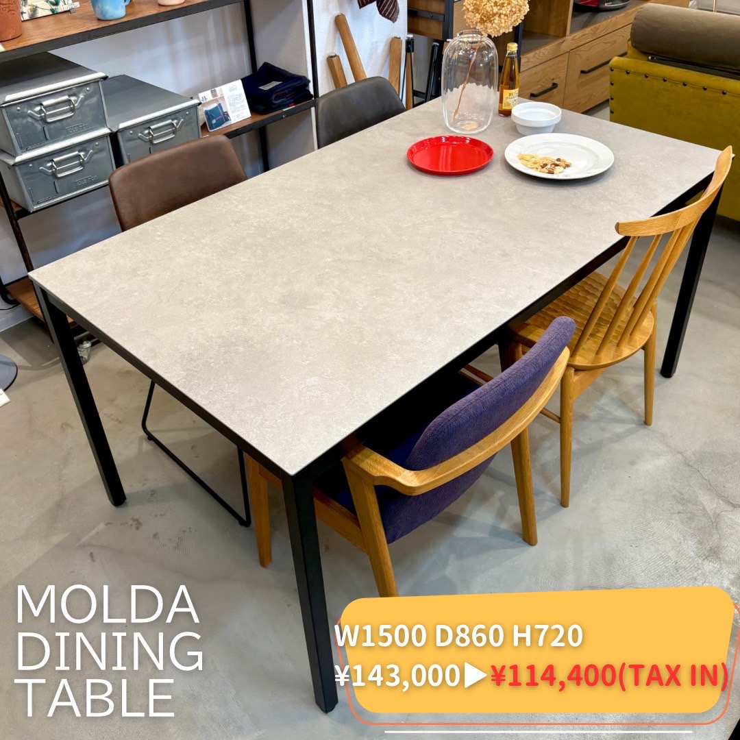店頭では、display item SALEを開催しています。 ダイニングテーブルや、チェア、ソファ、サイドテーブル、照明まで。