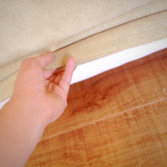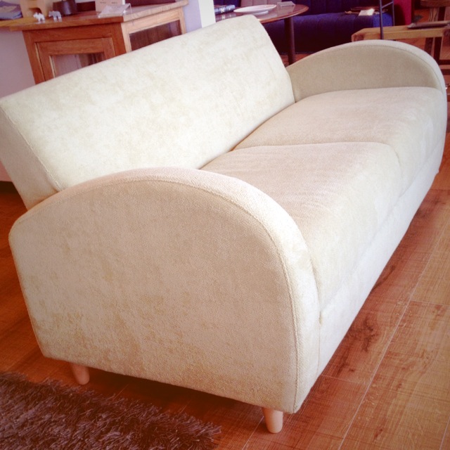 展示品をモコモコとした肌触りのいい優しい色の生地に変えました。