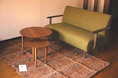 お部屋全体が四角なのでアクセントに丸型のローテーブルを配置しました。
